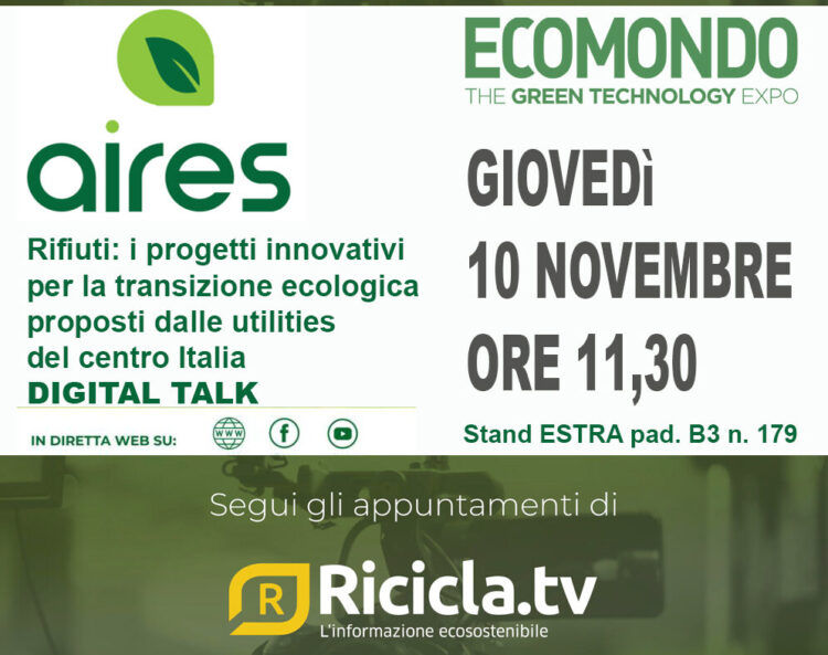 Il digital talk di Aires è un evento ibrido che si può seguire in presenza a Ecomondo (stand Estra numero 179 padiglione B3) oppure in diretta streaming sulla piattaforma web di Ricicla.Tv e sui suoi canali social.