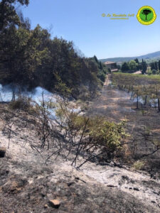RAPOLANO TERME. Stamani intorno alle ore 11 un incendio boschivo ha bruciato una vigna e una parte del bosco adiacente in località Villa Buoninsegna nei pressi di Rapolano Terme.