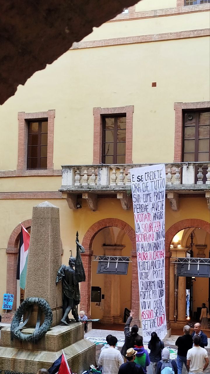 Infine, rileviamo una profonda contraddizione nel documento approvato dal Senato, che da un lato riconosce la legittimità delle proteste, mentre dall’altro, attraverso dichiarazioni ai giornali e negli organi collegiali, i vertici dell’Ateneo e il Ministro dell’Università e della Ricerca hanno contribuito a creare un clima di forte pressione nei confronti delle studentesse e degli studenti impegnati nella mobilitazione. In alcuni casi, sono state minacciate denunce e procedimenti disciplinari nei confronti di chi ha semplicemente espresso, in modo pacifico, una posizione condivisa da una parte ampia della società civile, che nelle piazze di queste settimane chiede la fine degli accordi con gli enti coinvolti nella pulizia etnica in Palestina e si oppone all’aumento delle spese militari.