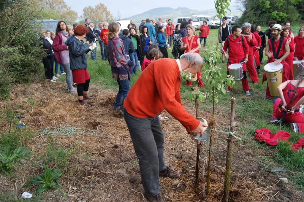 Anche in questa occasione, come già avvenuto durante la camminata al Podere Tesoro di Radicondoli, un albero di mele è stato piantato nel punto dove gli industriali della geotermia hanno progettato di mettere una trivella. La “ mela casulana” era nota anche al Boccaccio che nel 1350 la citava nel Decamerone.