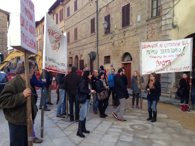 “La liberalizzazione delle concessioni Geotermiche di Scajola e Berlusconi e il piano energetico di Rossi, che prevede un’ importante espansione del settore geotermoelettrico, hanno portato i cittadini del paese di Radicondoli a ribellarsi. Il Comune di Radicondoli dedica più del 60% del suo territorio a impianti geotermici. In questa porzione di territorio hanno sede ben 6 centrali geotermiche Enel.