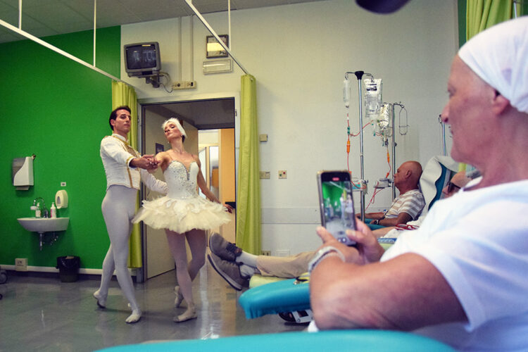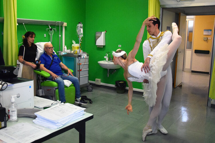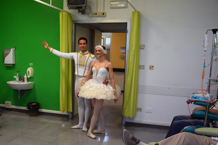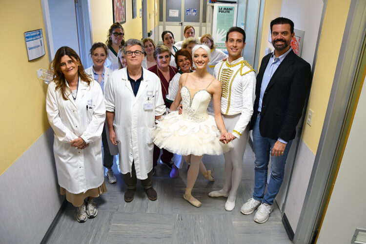 SIENA. Arte, musica e danza hanno allietato i pazienti oncologici dell’Azienda ospedaliero-universitaria Senese grazie all’iniziativa solidaristica “Danza in Corsia”, proposta e organizzata dalla Compagnia “Balletto di Siena”, diretta da Marco Batti. Sulle note del Lago dei Cigni di Tchaikovsky si sono esibiti i primi ballerini Chiara Gagliardo e Giuseppe Giacalone che hanno danzato per i pazienti del day hospital dell’Oncologia medica, diretta dal dottor Roberto Petrioli e alla presenza della direzione aziendale. Si tratta di un’iniziativa sperimentale ideata dal Maestro Marco Batti volta a promuovere il welfare dei pazienti in terapia oncologica, attraverso l’esecuzione di una performance coreutica.