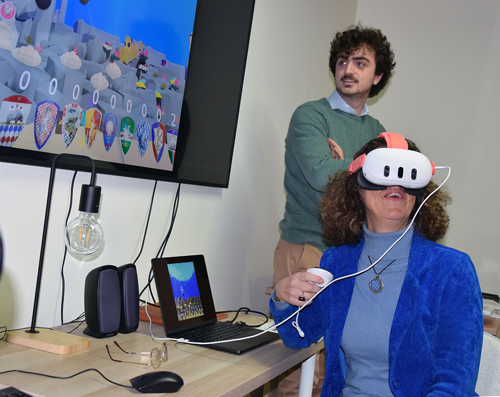 I visori proiettano i bambini all’interno delle stesse ambientazioni e storie raffigurate sulle pareti del reparto, dove i personaggi del libro prendono vita e interagiscono con loro in un viaggio immaginario – ad esempio, tra le profondità del mare dove liberare i simboli delle contrade di Siena facendo scoppiare bolle magiche.