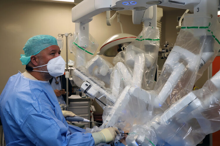 SIENA. Particolare intervento all’Azienda ospedaliero-universitaria Senese di chirurgia robotica urologica su una paziente affetta da tre tumori sincroni e bilaterali ai reni. L’intervento è stato effettuato dal dottor Filippo Gentile, responsabile della Chirurgia Robotica Urologica dell’Aou Senese, coadiuvato dal dottor Tommaso Chini, con il fondamentale supporto degli anestesisti della UOC Anestesia e Rianimazione Perioperatoria diretta dal dottor Pasquale D’Onofrio, e del personale di sala operatoria. «Abbiamo preso in cura la paziente – afferma il dottor Gentile – dopo il percorso ambulatoriale effettuato nella UOC Nefrologia, Dialisi e Trapianti diretta dal dottor Guido Garosi e seguito dalla dottoressa Francesca Cappelletti. La particolarità dei tumori è stata che due di questi erano esofitici, ovvero sulla superficie del rene e quindi aggredibili abbastanza agilmente, mentre la terza neoplasia era situata in profondità dell’organo, localizzabile attraverso un’ecografia intraoperatoria e che abbiamo asportato in una seconda fase dell’operazione.