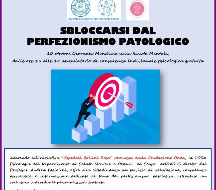 Dalle ore 15 alle 18 invece sarà attivo l’ambulatorio di consulenza individuale psicologica gratuita sul tema dello “sbloccarsi dal perfezionismo patologico”: anche per questa iniziativa è necessaria la prenotazione al numero 0577 586465 o scrivendo ad andrea.pozza@unisi.it.