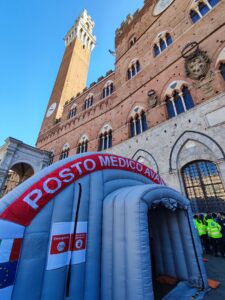 “Innanzitutto mi preme ringraziare a nome del direttore del Dipartimento Emergenza e Urgenza Mauro Breggia, e mio personale il sindaco Fabio, l’assessore Giordano e tutta l’amministrazione Comunale di Siena per averci concesso questo spazio nella bellissima Piazza del Campo per l’inaugurazione di questa nuova tenda pneumatica, che va a sostituire quella vecchia utilizzata come Posto Medico Avanzato (PMA) di primo livello, – le parole del direttore della Uoc Centrale operativa 118 Siena-Grosseto Giuseppe Panzardi. – Il PMA rappresenta, nelle maxiemergenze, l’anello della catena dei soccorsi dove si avvia il supporto sanitario vero e proprio. Esso svolge pertanto funzione di primo trattamento avanzato dei feriti e svolge funzione di filtro per evitare le cosiddette evacuazioni selvagge dal luogo dell’evento. Può essere installato, se vi sono le necessarie condizioni di sicurezza ed agibilità, in strutture preesistenti come scuole, palestre, chiese, capannoni, negozi, altri luoghi o spazi pubblici”.