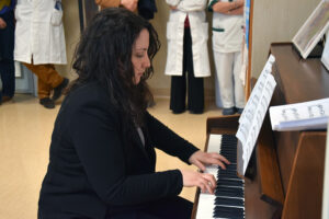 dall’esecuzione al pianoforte. Al concerto, oltre i pazienti e i loro familiari, affiancati dall’associazione Aquattromani, hanno assistito la dottoressa Maria De Marco, direttrice sanitaria, il professor Michele Maio, direttore del Dipartimento Oncologico e dell’Immunoterapia Oncologica, la dottoressa Angela Iacovelli, coordinatrice infermieristica del reparto, insieme ai professionisti e professioniste del Centro di Immuno-Oncologia dell’Aou Senese. Il prossimo appuntamento del progetto, realizzato in collaborazione con il Conservatorio di Siena Rinaldo Franci, si tiene giovedì 26 marzo, con inizio alle ore 14.30.