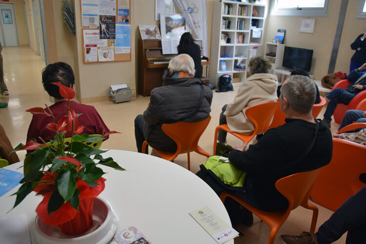 dall’esecuzione al pianoforte. Al concerto, oltre i pazienti e i loro familiari, affiancati dall’associazione Aquattromani, hanno assistito la dottoressa Maria De Marco, direttrice sanitaria, il professor Michele Maio, direttore del Dipartimento Oncologico e dell’Immunoterapia Oncologica, la dottoressa Angela Iacovelli, coordinatrice infermieristica del reparto, insieme ai professionisti e professioniste del Centro di Immuno-Oncologia dell’Aou Senese. Il prossimo appuntamento del progetto, realizzato in collaborazione con il Conservatorio di Siena Rinaldo Franci, si tiene giovedì 26 marzo, con inizio alle ore 14.30.