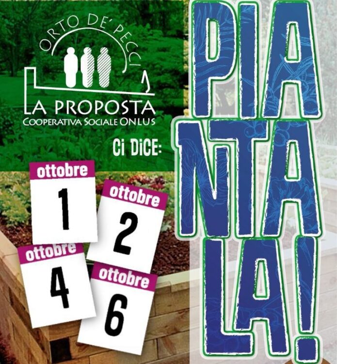 SIENA. “Piantala!” non è un perentorio invito a non dare fastidio, ma un modo simpatico per invitare ad un’originale iniziativa nell’ambito del progetto V.I. A. Tolomei. Hai il poliice verde o non ce l’hai, ma vuoi averlo? L’occasione sono i laboratori di coltivazione partecipata della Cooperativa La Proposta per imparare a prendersi cura delle piante, come dell’ambiente che ci circonda, creando e inaugurando i nuovi orti in cassetta di via Tolomei 7. Gli appuntamenti sono: Mercoledì 1 ottobre, Giovedì 2 , Sabato 4, Lunedì 6 ottobre dalle 15,30 alle 19,30 nella piazza di via Tolomei 7. Per informazioni e per partecipare +39 0577 22 22 01, o una mail a: ortodepecci@lapropostacooperativasociale.it