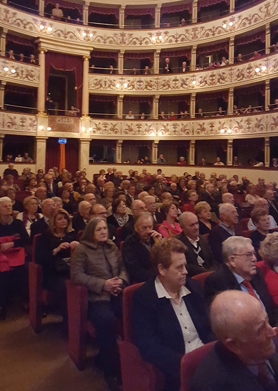 SIENA. L’amministrazione comunale ha festeggiato tutti i coniugi che in questo 2015 hanno raggiunto i 50 anni di matrimonio con un appuntamento collettivo tenutosi questa mattina  al Teatro dei Rinnovati. Altissima la partecipazione: circa un centinaio le coppie festeggiate che con familiari e amici hanno riempito completamente il teatro.