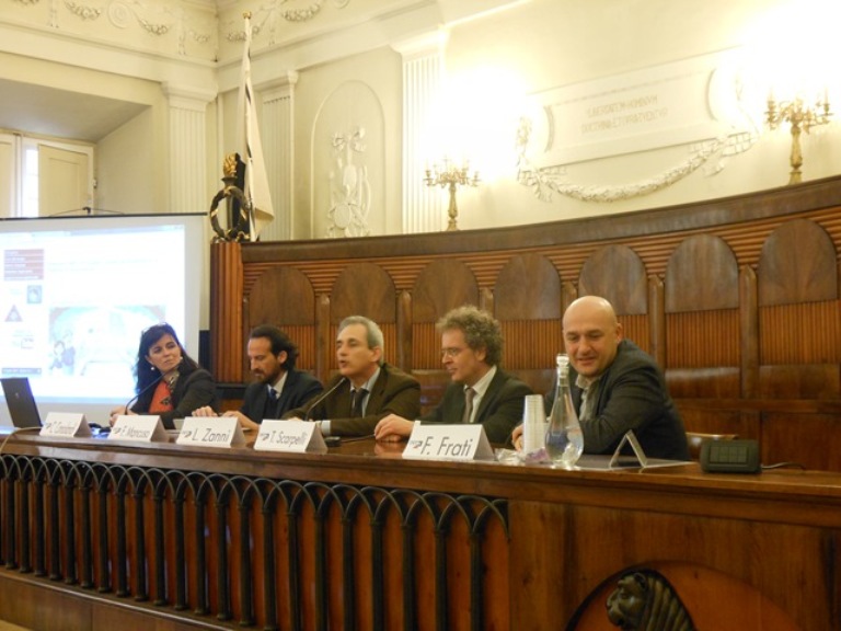 Nella foto, da sinistra, Costanza Consolandi, delegato all’orientamento in uscita; Lorenzo Zanni, prorettore alle Relazioni con le imprese e al trasferimento tecnologico; Fulvio Mancuso, vice sindaco del Comune di Siena, assessore allo Sviluppo economico, commercio, società partecipate; Tiziano Scarpelli, assessore della Provincia di Siena alle Attività produttive crisi, aziendali, commercio, politiche comunitarie; Francesco Frati, prorettore dell’Università di Siena.