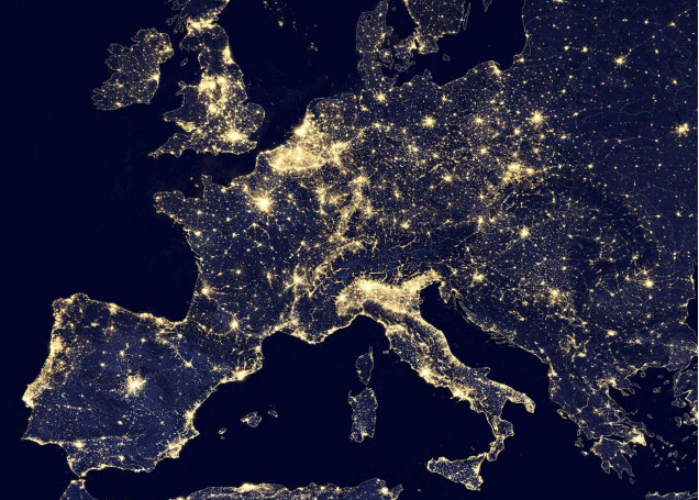 Nella foto: un’immagine satellitare dell’Europa con l’effetto dell’inquinamento luminoso.
