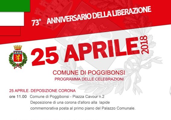 POGGIBONSI. Domani, mercoledì 25 aprile, Poggibonsi ricorda il 73° anniversario della Liberazione dal nazifascismo. Alle 11 l’Amministrazione deporrà la corona d’alloro alla lapide commemorativa posta al primo piano del Palazzo Comunale. La cerimonia è organizzata in collaborazione con l’Anpi di Poggibonsi. La deposizione della corona rientra nelle celebrazioni valdelsane per il 25 aprile che sono organizzate come sempre sulla base di un protocollo di area che vede insieme i Comuni di Barberino Val d’Elsa, Certaldo, Colle di Val d’Elsa (quest’anno Comune capofila), Monteriggioni, Poggibonsi, San Gimignano e Castelfiorentino.