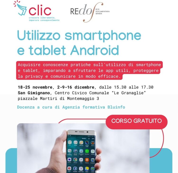 SAN GIMIGNANO. Prosegue a San Gimignano il progetto “CLIC – Crescere liberamente, imparare consapevolmente”, promosso dal Comune per favorire un uso più consapevole delle tecnologie e offrire spazi di formazione per famiglie, insegnanti e cittadini.
