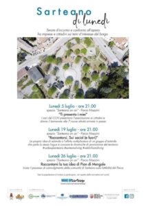 La serata è la prima delle tre previste nel mese di luglio organizzate dall’Associazione del commercio sarteanese con il titolo “di Lunedi: serate d’incontro e confronto all’aperto fra imprese e cittadini sui temi d’interesse del borgo”. Il secondo appuntamento si terrà lunedì 19 luglio alle ore 21.00 sull’importanza di raccontarsi (sui social e fuori) come gruppo di imprese e l’ultima lunedì 26 luglio, sempre alle ore 21.00 e sempre in Parco Mazzini, inizierà l’attesissimo percorso di confronto voluto dal Comune di Sarteano con le imprese, le associazioni, i giovani e la cittadinanza sulla progettazione nell’area della nuova Strada del Piano di Mengole.