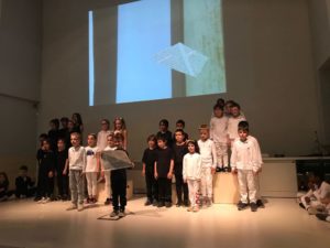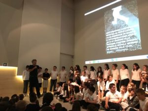 “Il progetto –commenta Pippo Lionni– quest’anno ha preso forma su un terreno già fertile: si sente che siamo al terzo anno di lavoro in questa scuola, il livello si è alzato molto, anche nei più piccoli, che sono sempre più consapevoli e si esprimono con un linguaggio maturo, da veri artisti! Questo mi dà gioia.”