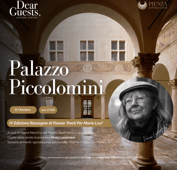 PIENZA. Opera Laboratori, in collaborazione con la Società degli Esecutori di Pie Disposizioni di Siena e il Centro Studi Mario Luzi “La Barca”, presenta la quarta edizione della rassegna annuale di poesia “Poeti per Mario Luzi”, curata da Marco Marchi. L’evento si terrà sabato 11 ottobre 2025, alle ore 17, nel suggestivo Palazzo Piccolomini di Pienza.