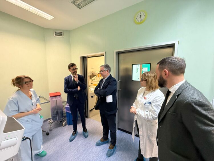 Prima della visita ai reparti dell’ospedale, il Direttore generale e l’Assessore hanno incontrato i professionisti per ascoltare le esigenze di chi lavora nella struttura. In seguito, hanno fatto un sopralluogo nei locali della Casa di Comunità.