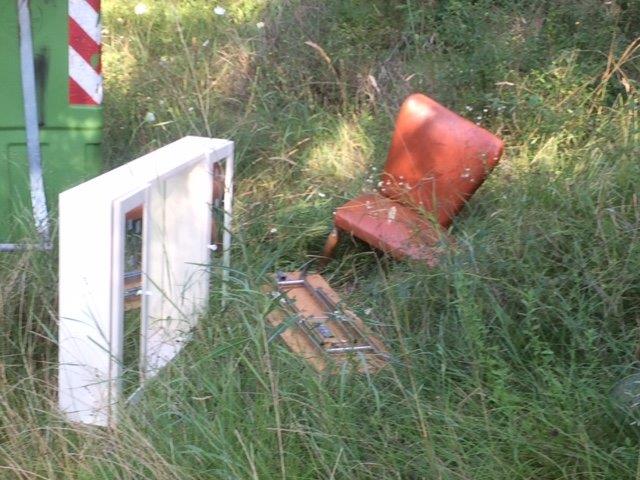 Nel Comune di Radda, lungo la strada di Volpaia, al bivio per Castelvecchi si vedono vari oggetti di miseria umana buttati in una piazzola accando a dei cassonetti- Sono vari oggetti di uso domestico, fra cui un piccolo fornello per la brace.