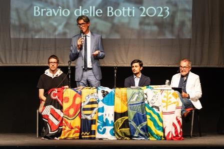 Il reggitore Andrea Biagianti, insieme al sindaco di Montepulciano Michele Angiolini e il consigliere con delega al Bravìo Gianluca Fè, prima di consegnare i tradizionali premi che sanciscono la fine del Bravìo 2023 hanno tracciato il bilancio finale di un’edizione che ha fatto registrare numeri importanti sia di presenze che di partecipazione.