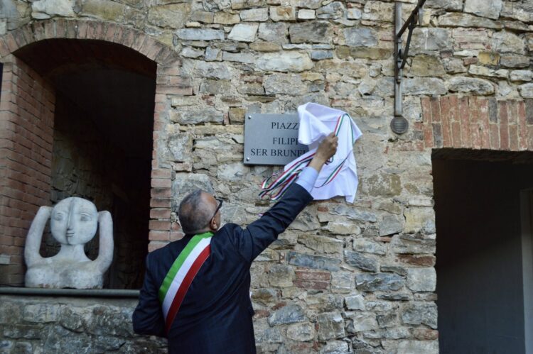 CASTELLINA IN CHIANTI. Con la nuova Piazzetta Filippo di Ser Brunelleschi e la statua in argilla a lui dedicata, Castellina in Chianti consolida il legame storico e architettonico con il celebre architetto e ingegnere del Rinascimento che progettò il camminamento di Via delle Volte come struttura difensiva militare per proteggere il paese chiantigiano. La cerimonia di intitolazione della piazzetta e di inaugurazione della statua, realizzata dall’artista Alessandro Chiaramonti e collocata all’ingresso di via delle Volte, si è tenuta ieri, domenica 4 maggio, alla presenza di numerosi cittadini.