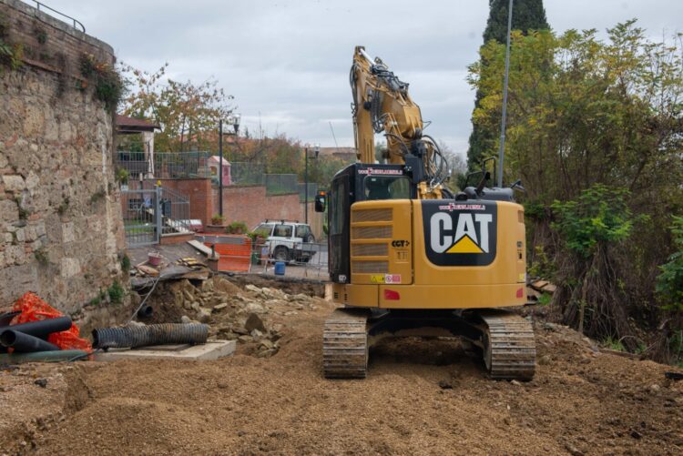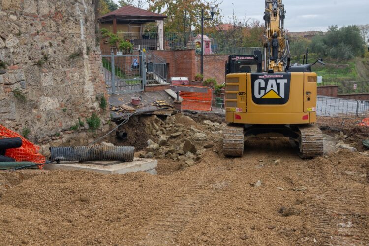 CHIUSI. A Chiusi Città proseguono gli interventi volti a effettuare i lavori di ripristino di via Longobardi dove attualmente insiste una voragine provocata dal cedimento del manto stradale. Venerdì 19 novembre la ditta Geoma di Arezzo ha effettuato le indagini geoelettriche e sismiche e lunedì 22 novembre la Ditta Fagiolari di Città della Pieve ha svolto un primo intervento di messa in sicurezza dell’area attraverso la sistemazione delle condotte danneggiate e la chiusura della voragine. I lavori sono stati svolti con la supervisione dell’Ing. Battistoni di Perugia oltre che con il supporto dell’Ufficio Tecnico Comunale. Grazie a questo intervento è stato possibile ripristinare l’accesso carrabile all’abitazione a ridosso della frana. L’amministrazione comunale sta valutando la fattibilità o meno di una completa riapertura della strada mettendo in essere, eventualmente, un senso unico alternato oltre a limiti di portata e velocità per raggiungere il parcheggio di Porta Lavinia.