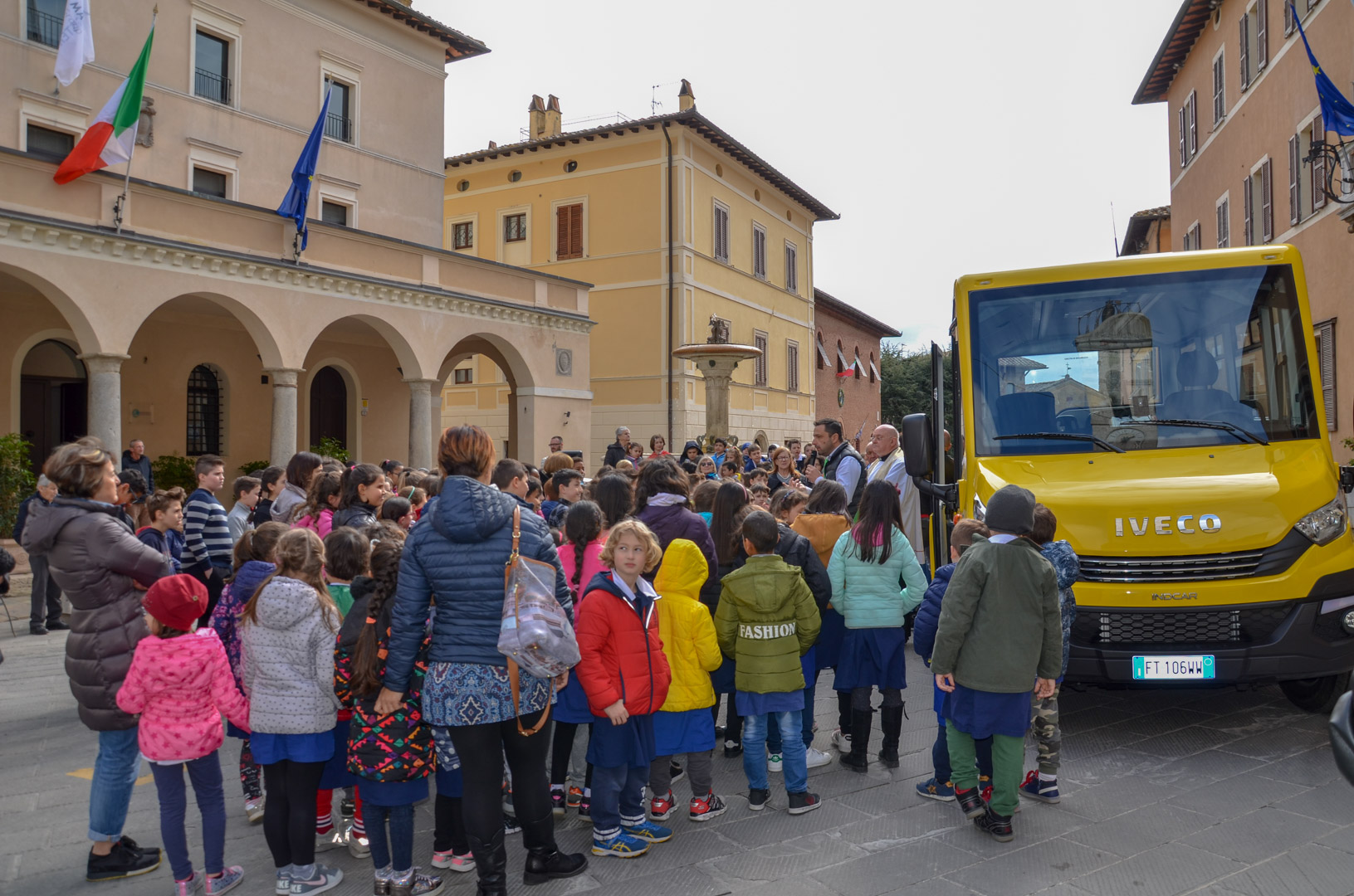 “E’ lo scuolabus più bello che abbiamo mai visto – dichiarano il sindaco Juri Bettollini e l’assessore all’istruzione Sara Marchini – siamo veramente soddisfatti dell’investimento fatto perché è compito dell’amministrazione garantire la qualità della scuola sotto ogni punto di vista. L’accompagnamento dei bambini da casa a scuola e ritorno, non deve e non può essere sottovalutato perché è assolutamente prioritario che avvenga in modo sicuro e con automezzi di grande qualità. Il nuovo scuolabus, che rappresenta una promessa mantenuta, va ad arricchire una flotta già importante, che però aveva necessità di un aggiornamento. Abbiamo investito risorse importanti, ma ogni euro speso per i nostri ragazzi è un euro investito nel futuro e per questo siamo tanto soddisfatti. E’ stata un’emozione consegnare le chiavi ai nostri autisti, che ringraziamo per l’ottimo lavoro che svolgono quotidianamente. Da lunedì il nuovo scuolabus entrerà ufficialmente in servizio e da quello che abbiamo visto oggi pensiamo proprio che i bambini faranno a gara per essere accompagnati”.