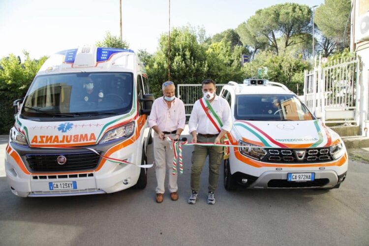 CHIUSI. La Pubblica Assistenza di Chiusi ha inaugurato una nuova ambulanza e un nuovo mezzo per la protezione civile acquistati grazie al contributo volontario dei tanti soci e messi subito a disposizione dei volontari per lo svolgimento dei servizi svolti quotidianamente dall’associazione di volontariato. L’ambulanza di ultima generazione e allestita con i macchinari più all’avanguardia nel campo dell’emergenza/urgenza come una barella idonea al traposto di culle termiche per neonati e l’auto di protezione civile allestita con gancio di traino e un motore 4×4 sono stati inaugurati alla presenza del presidente Enzo Fiorini e di alcuni volontari, del sindaco di Chiusi Juri Bettollini, dell’assessore Sara Marchini, del parroco Don Antonio e della Filarmonica Città di Chiusi. Durante la cerimonia di inaugurazione il presidente della Pubblica Assistenza Enzo Fiorini ha omaggiato con una targa tutti i volontari che si sono messi a disposizione nel periodo più difficile del lockdown garantendo servizi essenziali per la cittadinanza.
