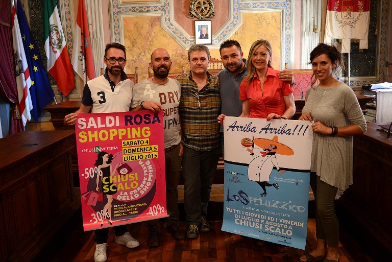 ???????????????????????????????????? CHIUSI. Con il mese di luglio, insieme a caldo e voglia di mare, tornano i saldi che, a Chiusi Scalo, diventano “Saldi rosa shopping”. L’evento promosso dal Centro commerciale naturale di Chiusi Scalo è stato presentato questa mattina nel corso di una conferenza stampa. Giunto alla sesta edizione prevede – proprio a partire da sabato 4 luglio (prima giornata di saldi in Toscana) e per domenica 5 luglio, – negozi aperti fino a tardi, centro della cittadina chiuso al traffico, musica dal vivo e tante occasioni di degustazione.