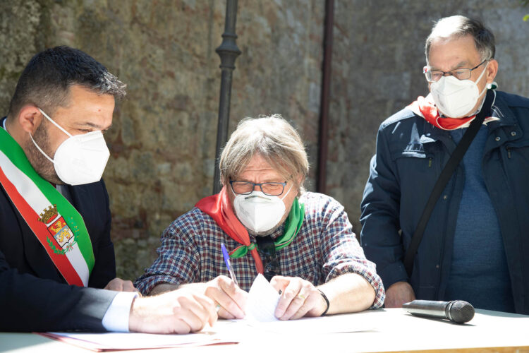 “Nella giornata di oggi celebriamo la Liberazione dal Nazifascismo e i valori che oggi ci permettono di definire la nostra società libera – dichiara il sindaco di Chiusi Juri Bettollini – giornate come oggi sono importanti perché è proprio nei momenti di difficoltà sociali, come quelli che stiamo vivendo, che dobbiamo essere ancora più vigili e attenti alla tutela dei nostri valori. La Resistenza e la lotta di liberazione costituiscono un momento di svolta per l’Italia, una presa di coscienza collettiva dopo gli anni bui della dittatura, un movimento complesso ed eterogeneo, fatto di donne e uomini, giovani e anziani, professori e contadini, militari e civili, che si ribellarono alle ingiustizie, ai dolori della guerra e con atti di piccolo e grande impegno civile e militare lottarono fino anche alla morte per regalarci la Libertà e la Democrazia. Tutti noi dobbiamo farci portatori attivi della memoria, salvaguardandola da tutti i più subdoli tentativi di revisionismo storico e di cancellazione del vero significato del 25 aprile. Lo dobbiamo innanzitutto a tutti coloro che combatterono e si impegnarono sulle montagne e nelle città a fianco dei soldati alleati, a tutte le vittime innocenti della furia nazifascista, ai perseguitati del regime. In questo non esistono sfumature c’è chi è antifascista e c’è chi non lo è. Il 25 aprile è la data fondativa della nostra democrazia e per questo dobbiamo celebrarla ed onorarla, praticando democrazia, difendendo i nostri valori guardando e lottando per il futuro. Oggi più che mai tutti noi, con in mente e nel cuore l’esempio e i valori della Resistenza, possiamo costruire segnali di coraggio e di speranza per la ripresa del nostro Paese. Per tutto questo è stata una vera soddisfazione sottoscrivere il contratto di cessione e regolarizzazione dei locali di via Baldetti alla Sezione A.N.P.I. Tiradritti di Chiusi. Quei locali situati nel palazzo comunale, la casa di tutti noi chiusini, che fin dall’immediato dopoguerra furono dedicati dal Comune a sede dell’allora neonata associazione partigiani adesso troveranno ufficiale regolarizzazione. Sono locali semplici che potranno però trovare nuovo lustro, grazie all’impegno degli iscritti e volontari della sezione, e che potranno e dovranno essere un luogo di tutela e studio della lotta antifascista della nostra Città, aprendosi alla fruizione della cittadinanza e delle scuole. Abbiamo sancito, nero su bianco, che il Comune di Chiusi si riconosce nei valori dell’antifascismo e sposa appieno lo spirito e le intenzioni dell’ANPI. Un gesto semplice ma una firma importante.”