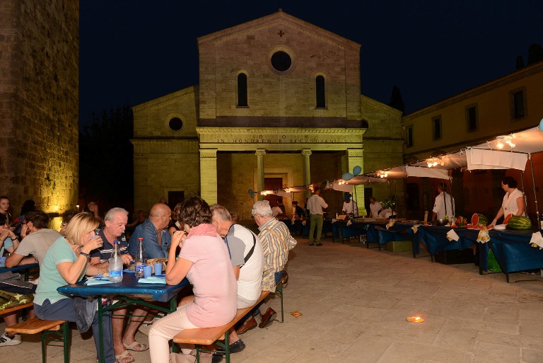 “Complimenti a tutta l’organizzazione e grazie – dichiara l’assessore Lanari – perché la sinergia dimostrata, l’impegno e la collaborazione anche nell’organizzazione di questo evento, rimandato a causa del maltempo dei giorni scorsi, hanno permesso di realizzare una manifestazione piacevole e ben riuscita che, giusto al termine del Festival Orizzonti appena conclusosi, è tornata ad animare il centro storico. Ringraziamo anche John Alborante per aver accettato il nostro invito ed aver espresso belle parole sulla nostra città, sui prodotti enogastronomici e sul nostro territorio tutto.” La cena in Piazza Duomo ha dato il via alle iniziative notturne, insieme al Mercatino di Porsenna e ai gonfiabili per i bimbi, già allestiti a partire dal tardo pomeriggio in Via Porsenna, hanno allietato la serata lo spettacolo delle “Golden Majorettes” e i balli latinoamericani che, intorno alle 21.30, hanno animato Piazza XX Settembre. Alle 23.00, presso l’orto vescovile, si è tenuto il brindisi “Calici di Stelle” con i vini offerti dai produttori di Chiusi. Al Parco dei Forti, invece, i più giovani hanno ballato con la discoteca “Discoblu”.