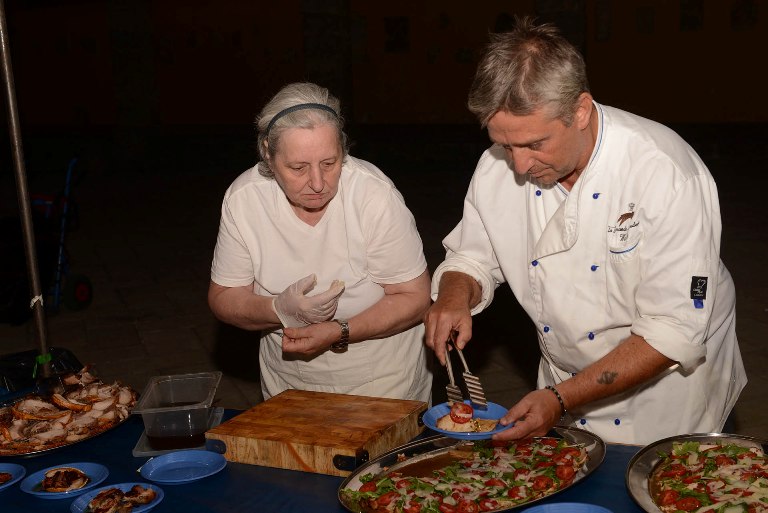 CHIUSI. Bilancio positivo per “La Notte dei Calici di Stelle” che ieri (mercoledì 12 agosto) ha animato le piazze e le strade del centro storico della città di Chiusi grazie alla collaborazione tra Comune, Botteghe di Porsenna, Proloco, associazioni, ristoranti e produttori locali, proponendo divertimento, musica e l’immancabile degustazione dei più buoni piatti e vini della tradizione locale. I vari chef, sono scesi, nel vero senso della parola, in piazza (Duomo) e hanno, con dei banchetti allestiti con tutto il necessario per cucinare le prelibatezze del territorio, soddisfatto il palato dei commensali. Alla partecipata “Cena in Piazza – Porsenna si Delizia- erano presenti anche il sindaco di Chiusi Juri Bettollini, l’assessore al sistema Chiusipromozione Chiara Lanari e l’assessore alla qualità della vita Andrea Micheletti, insieme ad altri commensali, con un ospite d’eccezione: il Sales & Marketing Manager Italy Ryanair, John Alborante che in questi giorni è in vacanza nelle nostre zone.