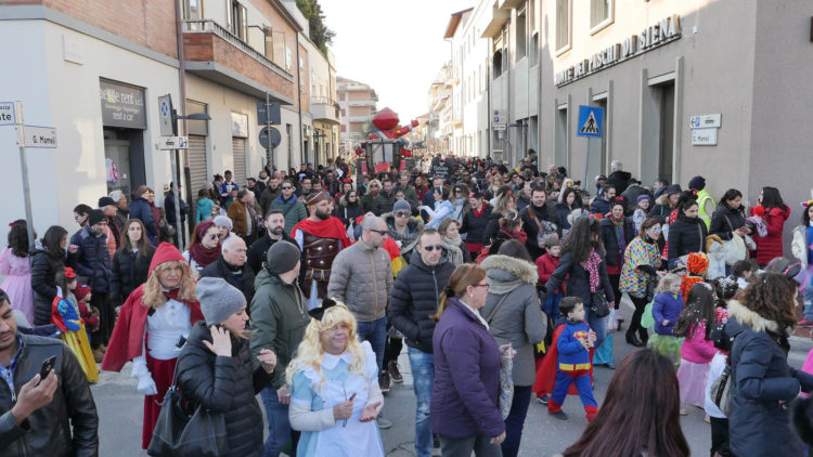 CHIUSI. La 66° edizione del Carnevale dei Ragazzi ha portato un tripudio di colori, musica e divertimento per le strade di Chiusi Scalo. Centinaia di persone e maschere hanno sfilato per le vie del centro commerciale naturale accompagnate dall’allegria dei gruppi mascherati e dei carri allegorici. La sfilata è stata aperta dalla Filarmonica Città di Chiusi che per l’occasione si è trasformata nella “RotoBanda” con i musicisti vestiti da operai del Comune e il direttore Roberto Fabietti vestito da sindaco con tanto di fascia tricolore e forbici per il “taglio del nastro”. I carri allegorici, realizzati in cartapesta, hanno celebrato i 90 anni della nascita di Topolino, il mito della Ferrari e, naturalmente, non hanno risparmiato un po’ di sana e divertente “visciaia chiusina” (satira). Protagonisti indiscussi del Carnevale dei Ragazzi, ovviamente, i più piccoli che hanno dato sfogo a tutta la propria immaginazione e riempito le strade di principesse e supereroi.