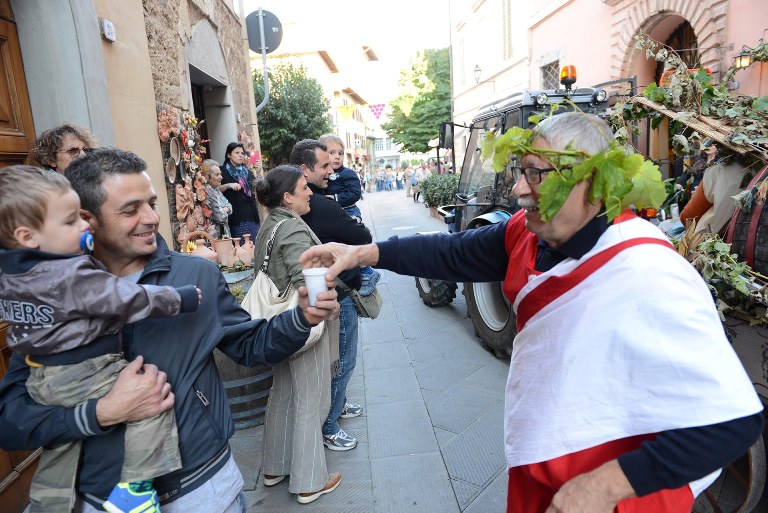 CHIUSI. La XXXIII edizione della festa dell’uva e del vino di Chiusi, organizzata dai Terzieri in collaborazione con il Comune, la Proloco, l’Associazione Italiana Sommeliers, numerose associazioni sia del centro storico che di Montallese (per le Feriae Vendemmiali), i commercianti, oltre a Banca Valdichiana di Credito Cooperativo Tosco Umbro, si è conclusa con una gioiosa sfilata di carri allegorici, dai “Giochi del tempo che fu” (vinti dal Terziere Santa Maria) e dai “Giochi de’ Citti” (vinti dal Terziere Sant’Angelo) che hanno animato le vie e le piazze del centro storico della città di Chiusi. La sfilata, dedicata a Bacco, è stata arricchita e coordinata dalla collaborazione delle Filarmoniche della Città di Chiusi e Magione e di tanti volontari, grandi e piccoli, capeggiati dallo storico Franco Rosati, in collaborazione con varie associazioni che ogni anno si dimostrano vera linfa vitale dell’iniziativa di fine settembre chiusina. L’ultima giornata di festa non è stata però caratterizzata solo dall’allegra sfilata; come nei giorni precedenti il centro storico della città di Chiusi è stato animato fin dalla mattina con il mercatino di Porsenna, animazioni ed iniziative musicali e culturali, visite guidate, plein air, cantine sparse in tutta la città , e degustazioni curate dall’Enoteca in Piazza Duomo, con tutta una selezione dei migliori vini locali e nazionali, grazie alla collaborazione dell’Associazione Italiana Sommeliers. Come sempre la Festa dell’Uva di Chiusi è stata anche occasione culturale grazie al programma di “Vinovagando” che ha portato tanti visitatori a scoprire la “Chiusi Sotterranea” in un itinerario guidato e iniziato nell’inestricabile rete di cunicoli del Labirinto di Porsenna e proseguito nella sezione ipogea del Museo Civico, con le sue cinquecento iscrizioni etrusche e il “laghetto sotterraneo” dall’acqua di smeraldo.