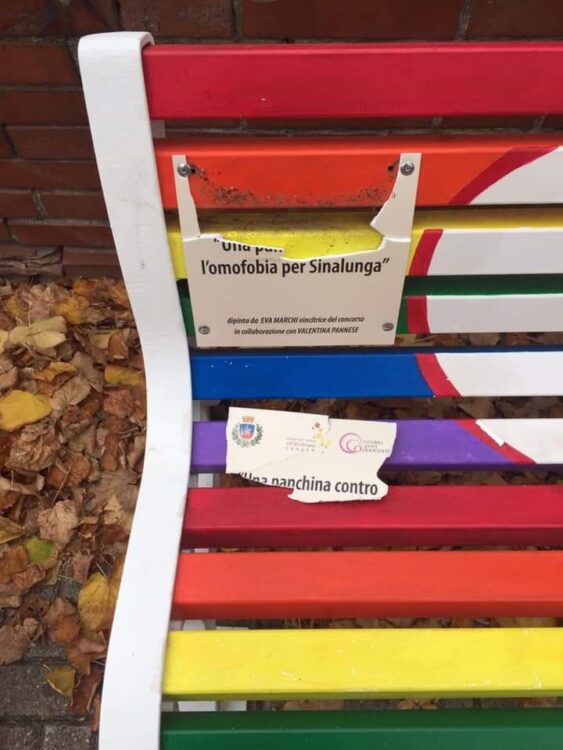 A Sinalunga e Pieve sono apparse sui muri pubblici delle scritte offensive firmate dal Blocco Studentesco, gruppo giovanile di estrema destra, mentre a Bettolle, dopo pochi mesi dall’inaugurazione, è stata nuovamente distrutta la targa contro l’omofobia posta dall’Amministrazione Comunale sulla panchina Arcobaleno davanti alla scuola primaria.