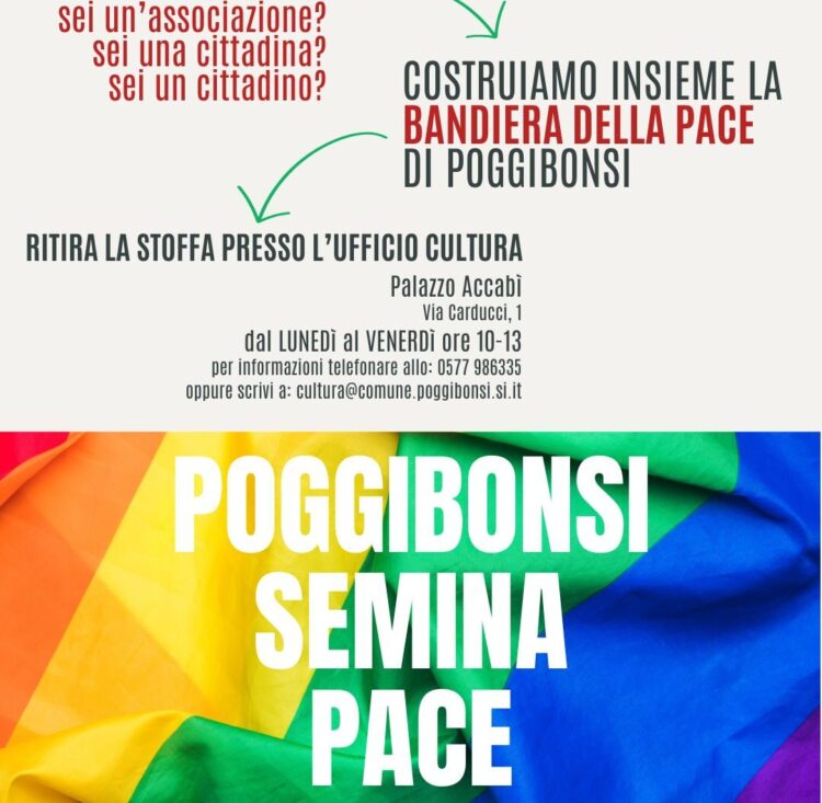 La Bandiera della Pace è realizzata grazie al contributo della Regione Toscana sul progetto “Poggibonsi semina Pace”, presentato su bando specifico dedicato alla Festa della Toscana 2025 dal titolo “Un ponte per la pace”. Si tratta di una delle azioni previste e in continuità con il percorso già intrapreso sulla pace, sui diritti, sul dialogo. La Bandiera, una volta assemblata, verrà presentata in una iniziativa pubblica.