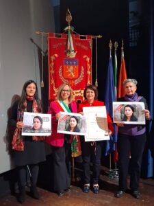 Nella foto palcocittadinanza: la sindaca Cenni con Shiva Mahbobi a cui ha consegnato simbolicamente la cittadinanza onoraria a Verisheh Moradi