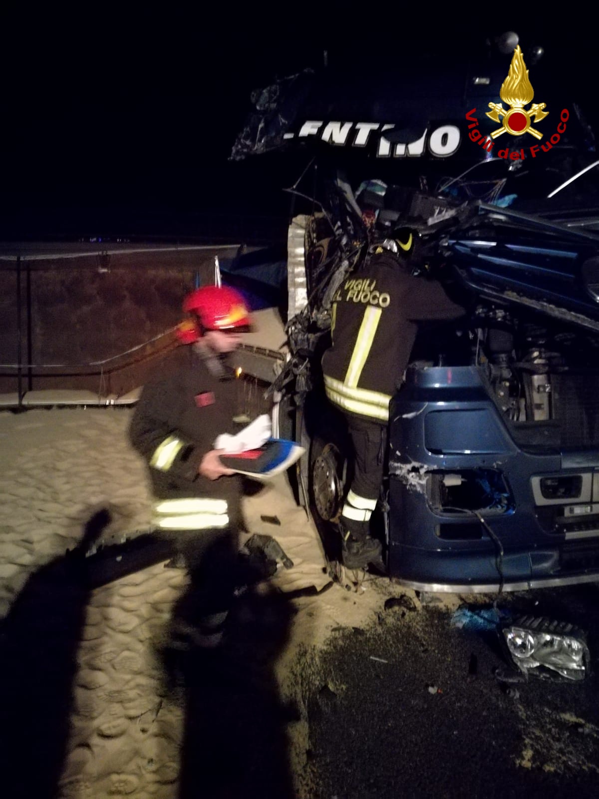 Lunga e complessa l’operazione per l’estrazione dei 5 feriti, che si trovavano alla guida dei mezzi pesanti, dove le cabine di guida erano schiacciate contro il rimorchio del mezzo pesante tamponato. Un mezzo pesante trasportava sabbia che si è riversata sulla carreggiata.