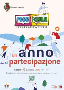 POGGIBONSI.  Si svolge sabato 6 dicembre l’incontro “Poggi Forum. Un anno di partecipazione” promosso dal Comune insieme ad Anci Toscana. “Un evento di restituzione e di confronto sul percorso fatto in questo primo anno di attivazione del regolamento sulla partecipazione – dice la sindaca Susanna Cenni – L’obiettivo è quello di affinare e migliorare costantemente gli strumenti a disposizione per essere sempre più capaci di costruire dialogo e confronto”. L’incontro si svolgerà a partire dalle 10 al terzo piano dell’Accabì dove nel novembre del 2024 si sono date appuntamento tante innovative esperienze regionali e nazionali sul tema della partecipazione. “Adesso è il momento di approfondire gli strumenti e i progetti attivati anche continuando a confrontarci con esperienze diverse – dice l’assessore competente Filippo Giomini – In questi mesi abbiamo avviato Consigli di frazione e Forum e di nuovo ringraziamo tutti coloro che si sono messi a disposizione. La commissione consiliare competente, come stabilito in Consiglio, è al lavoro per implementare il regolamento introducendo nuovi spazi di partecipazione con particolare attenzione al centro storico. Per cui c’è un lavoro in corso e c’è anche l’impegno ad un costante miglioramento attraverso il confronto con buone pratiche da cui poter ricevere riflessioni, spunti, supporti”.