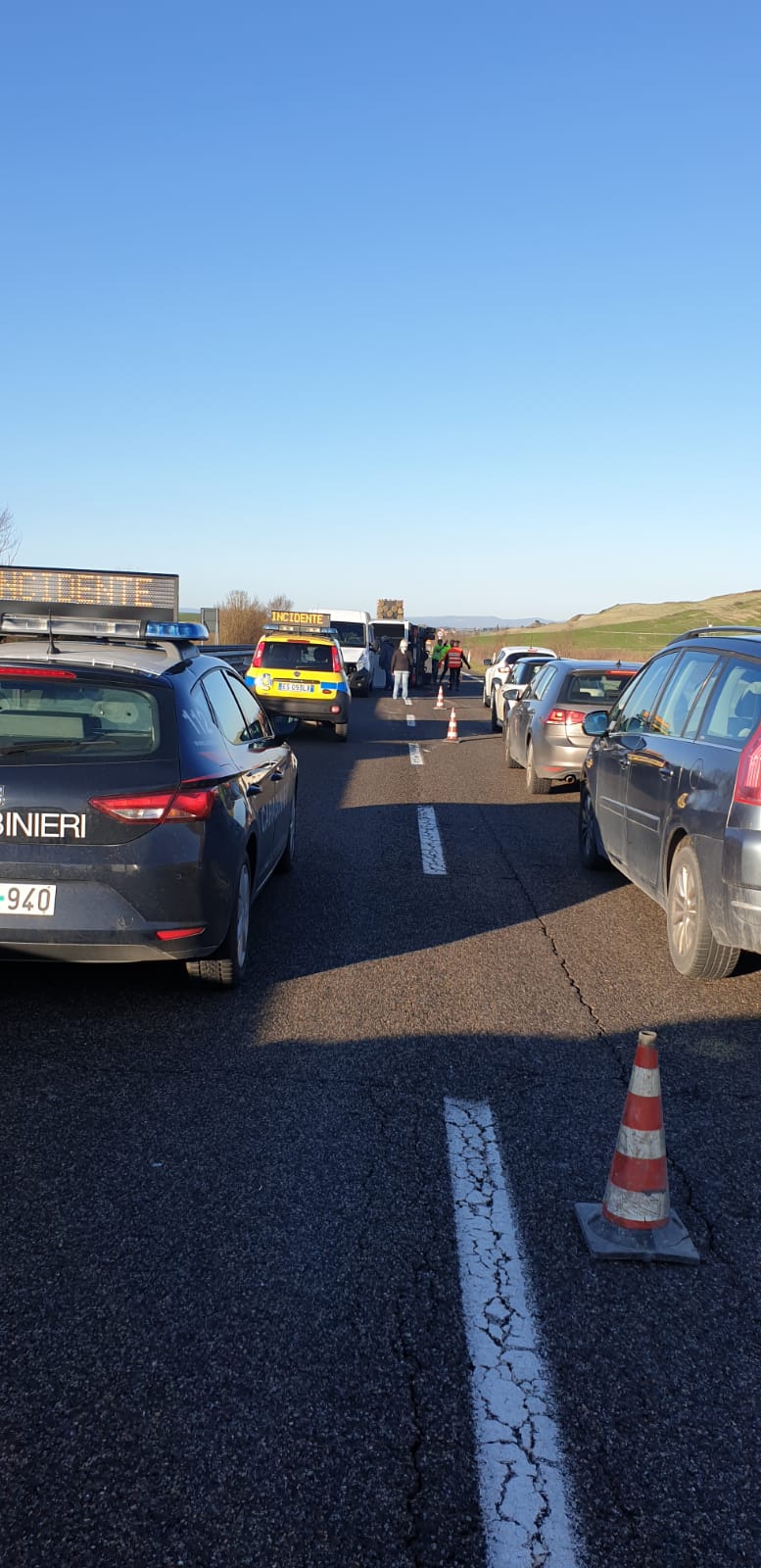 Per un guasto tecnico si è spento il motore del mezzo e il volante ha cessato di governare la direzione del furgone che è salito sul guardrail all’altezza di una scarpate, dopo una frenata di 42 metri (misurata dai Carabinieri)