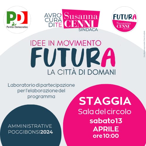 «Con l’appuntamento di questo sabato – aggiunge Cenni – proviamo a costruire un pezzo importante di quella visione che tradurremo, poi, nei progetti concreti da inserire in “Futura, la città che verrà”. Tra le idee già raccolte ci sono il rilancio del commercio, attenzione alle necessarie manutenzioni e cura del verde, partecipazione dal basso dei cittadini, sostegno alla valorizzazione del borgo, turismo slow e culturale, legato ai cammini o ai percorsi in bici. Proseguiamo con convinzione e apertura in questo percorso partecipato: è il nostro approccio per costruire il programma e sarà anche il nostro approccio per governare la città».