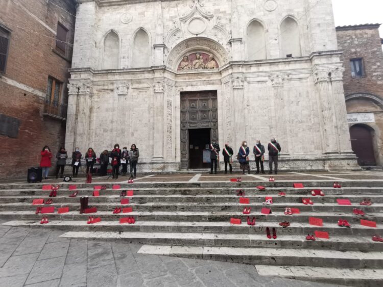 I centri storici con i loro palazzi, monumenti e fontane saranno illuminati di rosso come simbolo di un futuro senza violenza di genere. Le biblioteche di Cetona, Chianciano Terme, Chiusi, Montepulciano, Pienza, Sarteano e Sinalunga si tingono di rosso con consultazione e presentazione di libri collegati al tema della violenza contro le donne. I palazzi comunali saranno ornati di rosso con drappi, scarpe e fiocchi, come simbolo condiviso contro la violenza di genere. “Posto occupato” a Cetona, Chianciano Terme, Chiusi, Montepulciano, Pienza, San Casciano dei Bagni, Sarteano, Sinalunga, Torrita di Siena e Trequanda; a Torrita di Siena oltre ai luoghi pubblici anche i pubblici esercizi hanno aderito all’iniziativa del “posto occupato” e a Montepulciano ha aderito la Biblioteca comunale e l’Archivio storico “Pietro Calamandrei”.