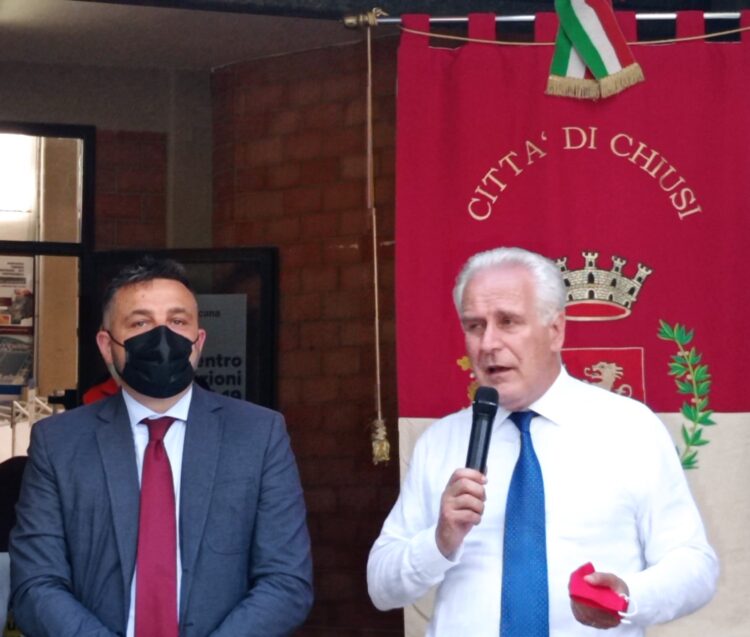 giani_bettollini: il sindaco di Chiusi Juri Bettollini e il presidente della Regione Eugenio Giani all’inaugurazione
