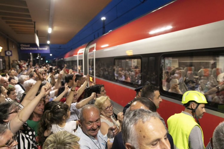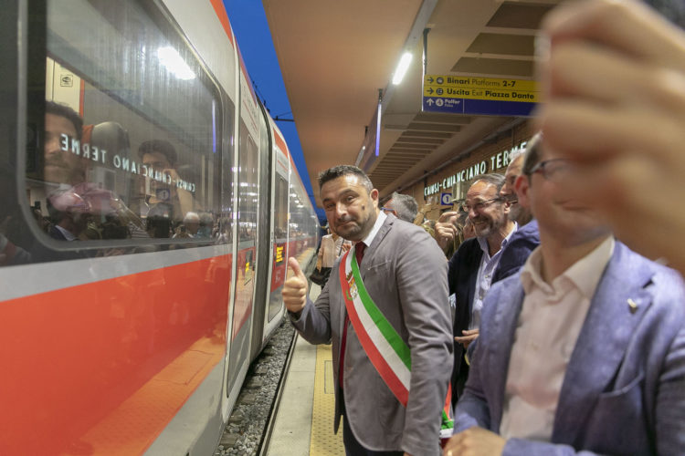 L’arrivo del treno è stato atteso da oltre 500 persone con in testa il sindaco Juri Bettollini, visibilmente emozionato, le altre autorità istituzionali e la Filarmonica Città di Chiusi