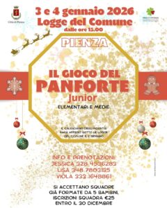 Subito a ruota, il 3 e 4 gennaio torna il Gioco del Panforte sotto le Logge del Comune, stavolta nella versione “junior”, organizzata dalla Pro Loco Pienza. Una competizione che, al pari di quella degli adulti, regala emozioni, gare combattute e capanne alte.