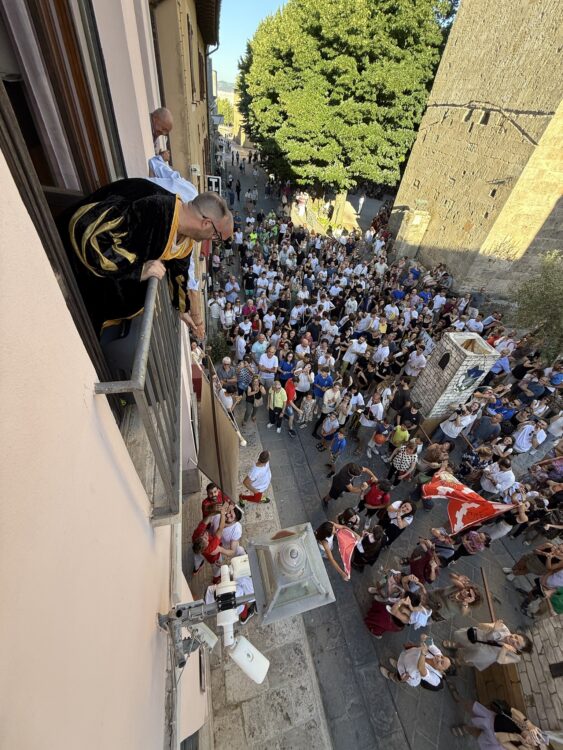 Per tre giorni il centro storico si è trasformato in un palcoscenico a cielo aperto, tra spettacoli, musica e rievocazioni, richiamando cittadini e visitatori in un clima di festa. Tra le novità più apprezzate, il corteo storico in notturna che ha sfilato per la prima volta giovedì 26 giugno, intrecciandosi con la solenne processione per l’apertura dell’urna di Santa Mustiola in Duomo, dando vita a un suggestivo momento di devozione e memoria storica.