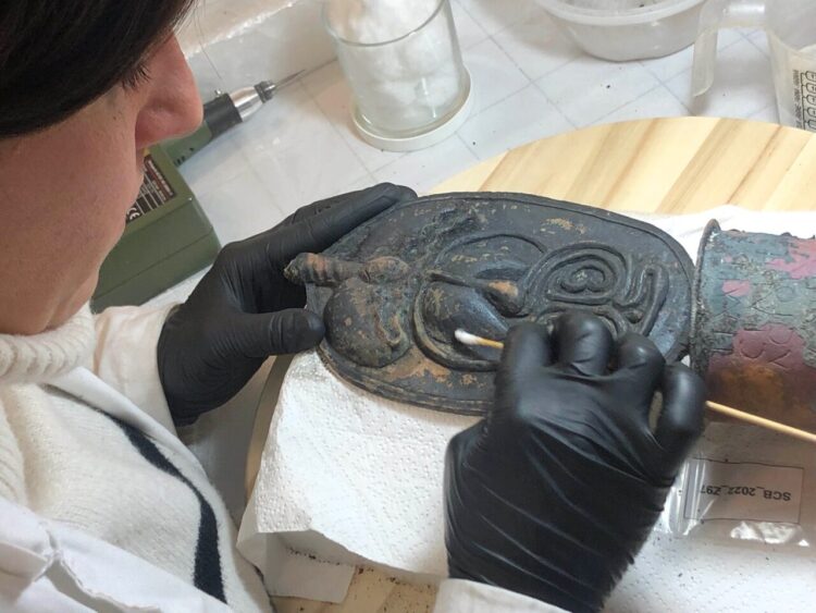 Così le restauratrici incaricate da Friends of Florence, con la direzione della Soprintendenza e dell’Istituto Centrale del Restauro e in particolare della Dr.ssa Wilma Basilissi, in queste settimane, con le mani sapienti della dr.ssa Laura Rivaroli, stanno riportando alla luce dettagli eccezionali sui corpi in bronzo che per oltre duemila anni sono rimasti all’interno del fango caldo. È un’azione lenta, che alterna metodi di pulizia diversi e continui, e che si avvale degli studi diagnostici portati avanti da Salvatore Siano dell’IFAC-CNR, di Marco Giamello dell’Università degli Studi di Siena e di Paolo Piccardo dell’Università di Genova.