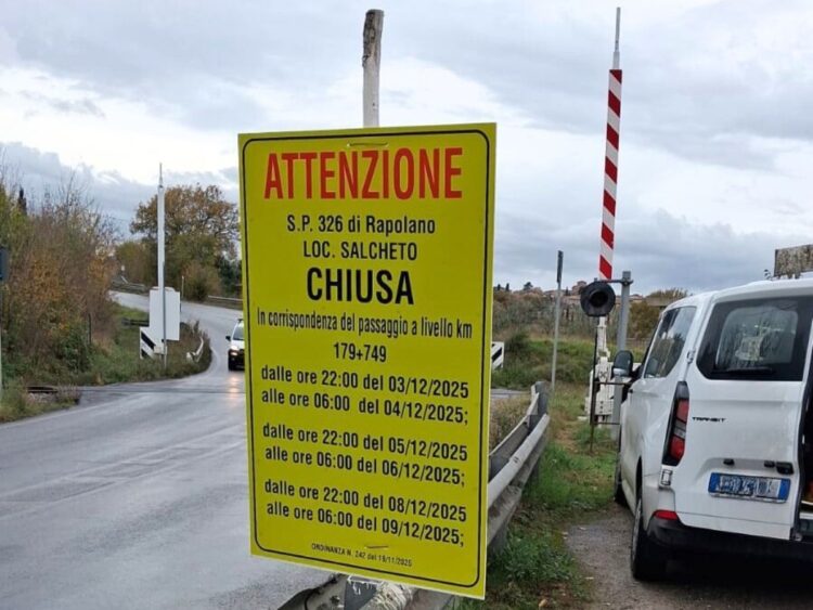 Nello specifico, sono sei i passaggi a livello presso i quali è stata richiesta l’interruzione della viabilità: a Montepulciano Stazione in Via Rovisci (Passaggio a Livello km 182+180) e nella strada vicinale tra via del Buonviaggio e via Marsala (altezza intersezione Passaggio a Livello km 181+522); ad Acquaviva in Via del Santo (Sp 68) e in Via Fontedoccia (altezza intersezione Passaggio a Livello km 180+298); in due punti a Salcheto, sulla SP 326, ossia al passaggio a livello km 179+749, dal lato Case Nuove-Acquaviva, e al passaggio a livello km 179+055, verso Tre Berte.