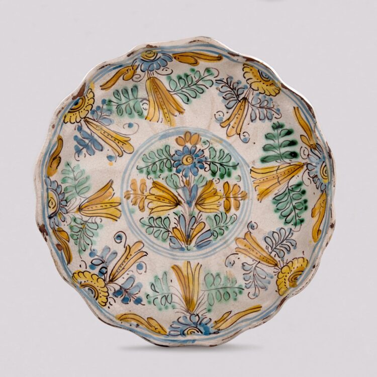 Diversi sono i tipi morfologici e d’uso rappresentati e fanno riferimento ad una oggettistica di largo impiego in vari contesti sociali. Anzitutto ci sono manufatti destinati alla mensa dei ceti più agiati: crespine, cioè coppe baccellate, generalmente utilizzate per contenere frutta e servire allo stesso tempo da elementi decorativi, che con diciannove pezzi costituiscono la forma più rappresentata nella raccolta. La maggior parte di questi oggetti sono caratterizzati da decorazioni policrome, il cui impianto figurativo comprende scenette agresti, secondo il gusto dell’epoca, con uccellini, lepri o cani in corsa, ma anche putti, caseggiati rurali, mazzetti di fiori, o la tipica Rosa dei Venti, generalmente circoscritti entro un tondo o disposti in campo aperto al centro del manufatto.