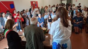 “Per noi un modo per ringraziarlo – ha detto la sindaca – per le sue straordinarie doti artistiche, per il contributo dato alla crescita artistica e culturale della nostra città, per la sua capacità di promuovere il dialogo tra tradizione e innovazione, per la sua generosità”. Parole scritte nella pergamena donata dal maestro Paladino. Il conferimento della cittadinanza è stato proposto dall’Associazione Arte Continua alla Giunta comunale ed è stato approvato all’unanimità dal Consiglio Comunale del 15 aprile scorso. Tante le persone presenti alla cerimonia che ha visto la partecipazione di esponenti delle amministrazioni valdelsane ed ex sindaci della città di Poggibonsi: Marcello Gentilini, Fabio Ceccherini e Luca Rugi.